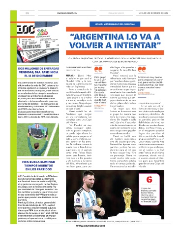 ya rozan los 2 millones de boletos tulo de Qatar, el 10 aclaró: por peque- veteranos que marcan el