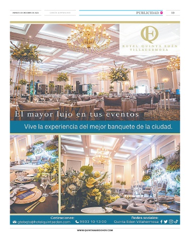 19 PUBLICIDAD VIERNES 5 DE DICIEMBRE DE 2025 CANCÚN, QUINTANA ROO QH 19 WWW.QUINTANAROOHOY.COM