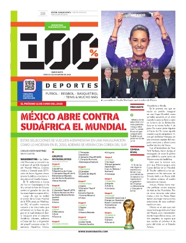 WASHINGTON.- La Selec- MUNDIALISTAS C (Turquía/Rumania 1.Francia México como de Sudáfrica.