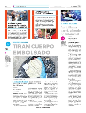SALVADOR TREJO dentro de una bolsa negra, la vuelto en una cobija y ya pre- mientras su acompañante,