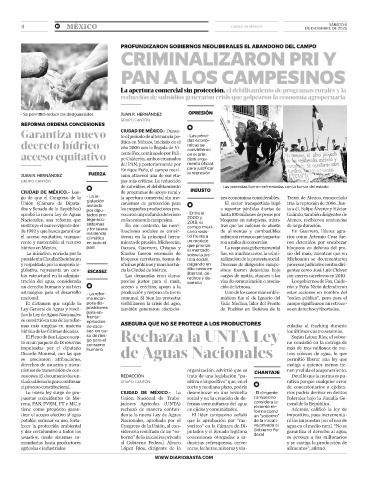 Nacionales, una reforma que tege eco- en la economía campesina. 2000 y bloqueos en autopistas, mien- Atenco, recibieron sentencias