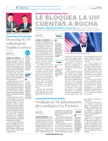 de Enrique Peña, Emilio Lo- Cantú se realizaba una inda- ción recae en nate, originario de Monte- sospechas de que el concur-