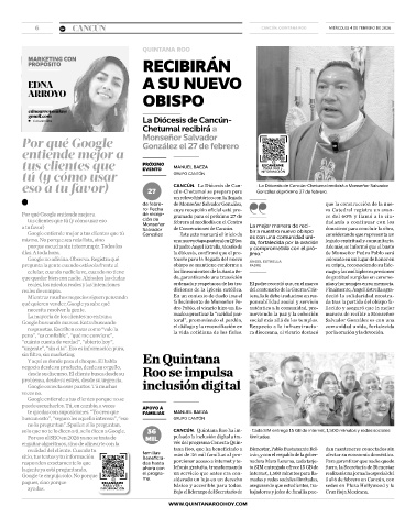 eso a tu favor) 27 CANCÚN. La Diócesis de Can- • La Diócesis de Cancún-Chetumal recibirá a Monseñor Salvador