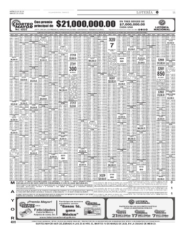1 MIL 05123 10360 t 1,200.00 14 MIL 18785 . 3,000.00 24060 t 1,200.00 por conducto de 27386 c 800.00 31340 . 3,000.00 36160 t 1,200.00 36261 38760 t 1,200.00 las 4 últimas 48 MIL 52907 c 1,200.00 MIL PESOS 56460 t 1,200.00