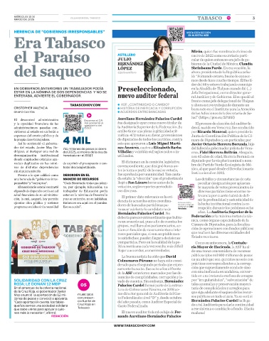 "Cada aportación cuenta. los tabas- cia fuerte de del año pasado, como Auditor Especial de