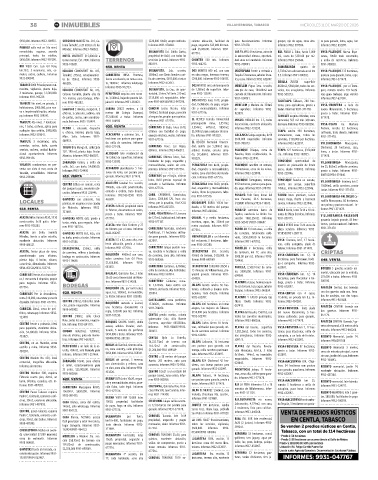9933-223946 61D. VENTA ganado. Informes 9931-371478. CÁRDENAS por el bajio, ultimos ción. Informes 9931-677516.