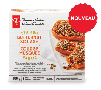De plus, comptez sur notre Courge musquée farcie PCMD pour faire de vous la vedette des Fêtes. À la fois sophistiqué et festif, ce délice destiné aux végétariens est si alléchant que tout le monde voudra y goûter. On a garni la courge d’un mélange très savoureux de tomates, d’orge perlé, de pois chiches, de sarrasin, d’oignons rouges, de courgettes et de quinoa. À cela s’ajoute notre mélange spécial de graines de tournesol, de citrouille, de lin et de sésame qui devient délicieusement croquant au four (mais laisse la courge super tendre). Pré-aromatisée d’une vinaigrette citronnée, cette courge passe du congélo à votre assiette après 60 minutes au four. Pas besoin de perdre votre journée à trancher des ingrédients ou à les couper en dés. Profitez-en plutôt pour vous préparer à accueillir les applaudissements que vous recevrez de vos invités, dès leur première bouchée.