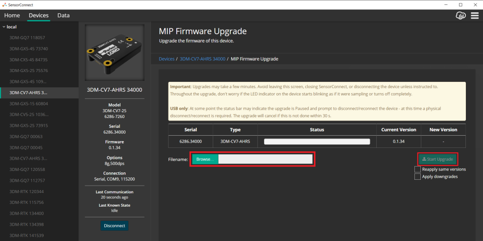 How to Upgrade Using SensorConnect