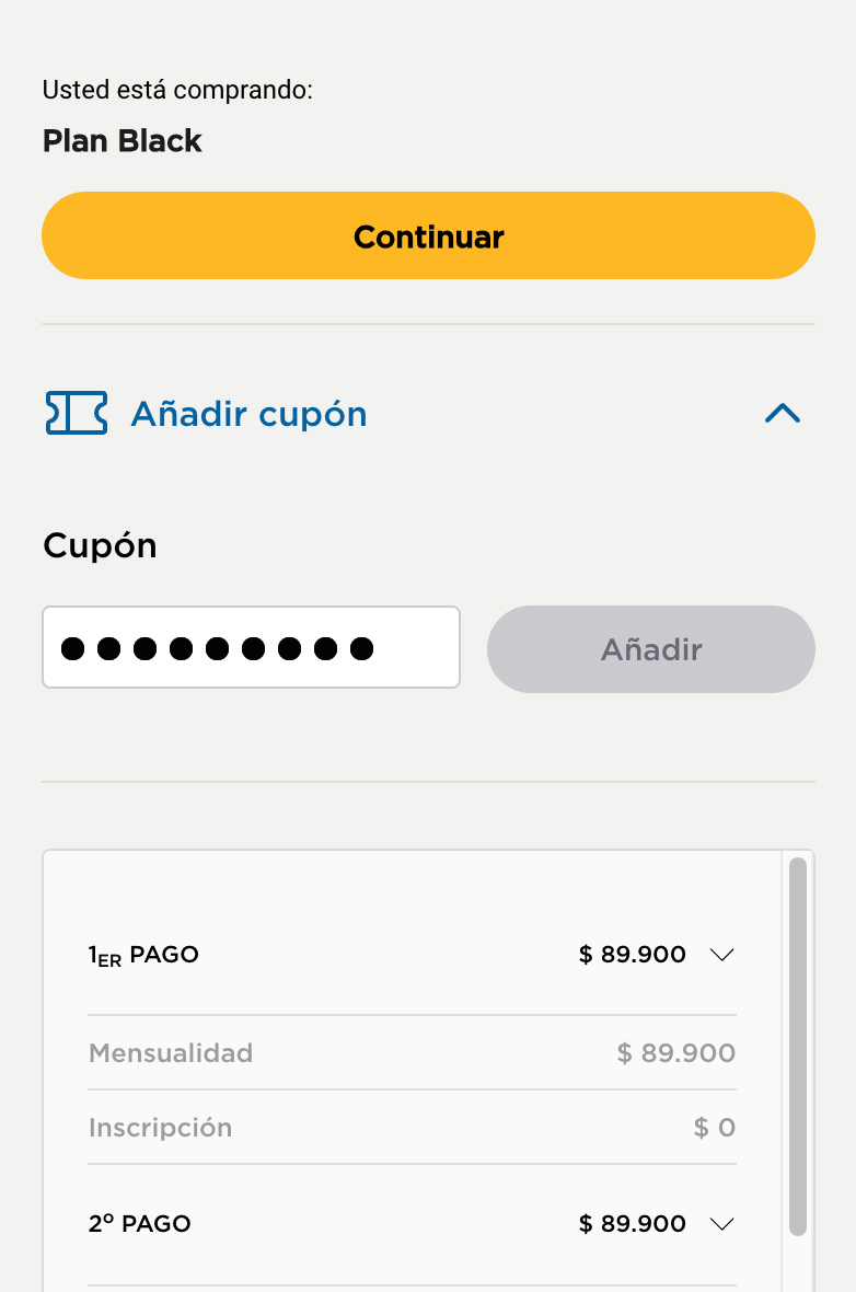 • La mensualidad gratuita aplica únicamente para compras en Plan Black