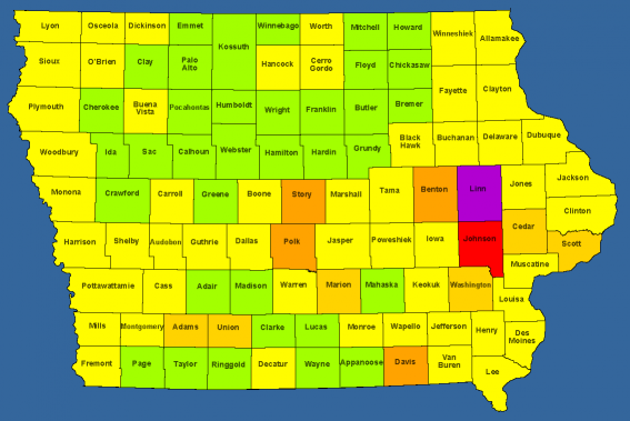 | Most Counties in a day: | 13 (Grundy : Iowa, Hardin : Iowa, Hamilton : Iowa, Marion : Iowa, Webster : Iowa, Humboldt : Iowa, Warren : Iowa, Kossuth : Iowa, Palo Alto : Iowa, Emmet : Iowa, Clay : Iowa, O'Brien : Iowa, Dickinson : Iowa) on 8/13/2017 |