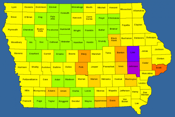 | Most Counties in a day: | 13 (Grundy : Iowa, Hardin : Iowa, Hamilton : Iowa, Marion : Iowa, Webster : Iowa, Humboldt : Iowa, Warren : Iowa, Kossuth : Iowa, Palo Alto : Iowa, Emmet : Iowa, Clay : Iowa, O'Brien : Iowa, Dickinson : Iowa) on 8/13/2017 |