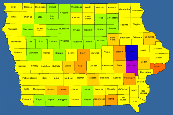 | Most Counties in a day: | 13 (Grundy : Iowa, Hardin : Iowa, Hamilton : Iowa, Marion : Iowa, Webster : Iowa, Humboldt : Iowa, Warren : Iowa, Kossuth : Iowa, Palo Alto : Iowa, Emmet : Iowa, Clay : Iowa, O'Brien : Iowa, Dickinson : Iowa) on 8/13/2017 |