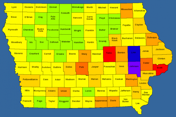 | Most Counties in a day: | 13 (Grundy : Iowa, Hardin : Iowa, Hamilton : Iowa, Marion : Iowa, Webster : Iowa, Humboldt : Iowa, Warren : Iowa, Kossuth : Iowa, Palo Alto : Iowa, Emmet : Iowa, Clay : Iowa, O'Brien : Iowa, Dickinson : Iowa) on 8/13/2017 |