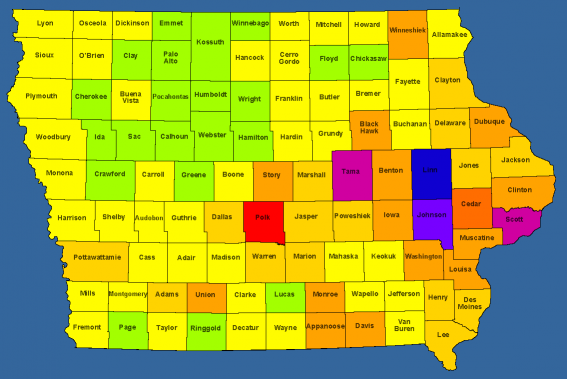 | Most Counties in a day: | 13 (Grundy : Iowa, Hardin : Iowa, Hamilton : Iowa, Marion : Iowa, Webster : Iowa, Humboldt : Iowa, Warren : Iowa, Kossuth : Iowa, Palo Alto : Iowa, Emmet : Iowa, Clay : Iowa, O'Brien : Iowa, Dickinson : Iowa) on 8/13/2017 |