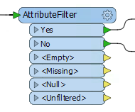 Another example is the AttributeFilter transformer, which has separate output ports for <Empty>, <Missing>, and <Null>: