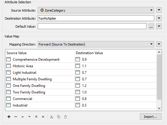 Open the parameters for each transformer in turn. Notice that the AttributeValueMapper is mapping from zone category to a TaxMultiplier value: