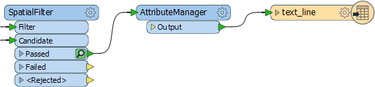 Add an AttributeManager connected to the SpatialFilter:Passed output port and inspect its parameters.