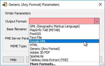 A Generic Writer is used in the same way as any other writer; by specifying the format in the Add Reader (or Generate Workspace) dialog: