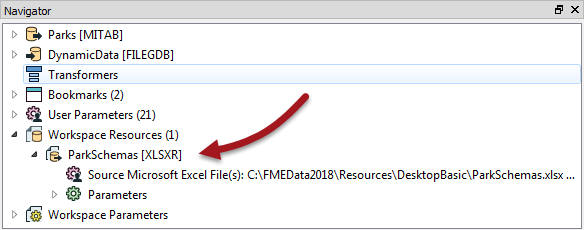 For example, here the workspace author is converting parks data to an Esri Geodatabase, but has chosen an Excel spreadsheet as the required structure for the output dataset.