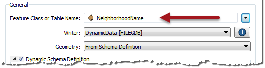 At runtime, FME looks in each of the Schema Sources to find a table called Downtown. It will use the schema of that table to define the attributes and geometry allowed in the dynamic writer's output.