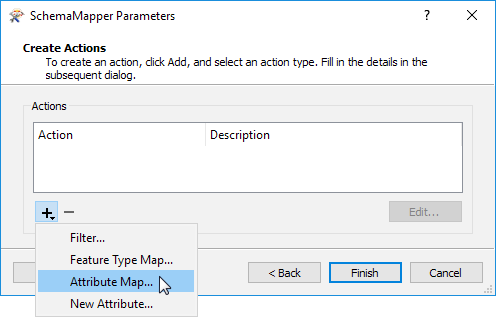 Add a SchemaMapper transformer to the workspace, connected to the output feature type: