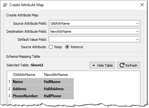 When prompted, select OldAttrName as the source field and NewAttrName as the Destination field. Check the box to Remove the original attributes (i.e. this is a renaming, not copying):