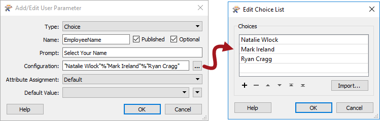 EmployeeID is provided by the end-user, but they can’t always remember their own ID number. So, the author creates a Choice with Alias user parameter.