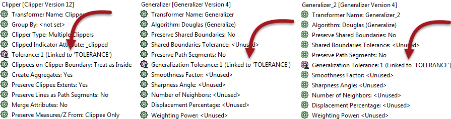 However, the workspace author has decided to apply the same parameter in three places in total; two Generalizers and a Clipper: