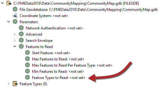 However, this we can do very easily. Firstly locate the Feature Types to Read parameter in the CommunityMap reader "Features to Read" parameters (in the Navigator window):