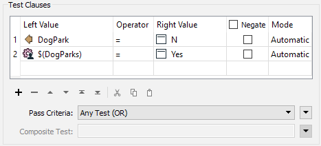 To use the DogParks parameter open up the Tester parameters dialog. Add a second test clause: