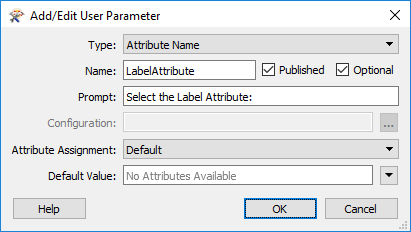 Click the run button and see what appears in the list of prompts; you should see a parameter to Select the Label Attribute. But look! The parameter shows "No Attributes Available". Why is this?