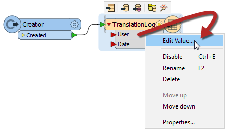 Place a Creator transformer down and connect it to the TranslationLog feature type: