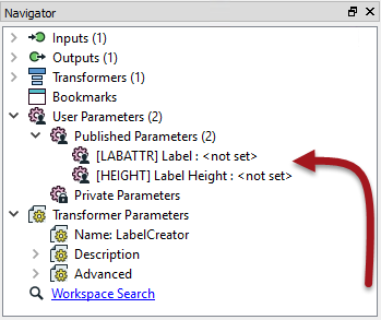 This means that the user is no longer prompted for these when the workspace is run! But... those parameters instead become available on the Custom Transformer itself:
