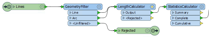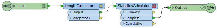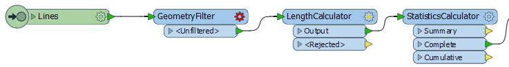 | End Workspace | C:\FMEData2018\Workspaces\DesktopAdvanced\CustomTransformers-Ex4-Complete.fmw C:\FMEData2018\Workspaces\DesktopAdvanced\AverageLengthCalculator.fmx |
