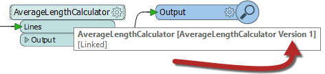 Using the Quick Add menu or the Transformer Gallery, place a new instance of the AverageLengthCalculator custom transformer in the workspace (it will be linked by default, which is fine). If you hover the mouse cursor over the transformer the pop-up text will show that it is version 1.
