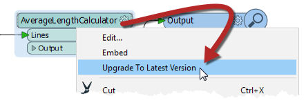 Now right-click on the AverageLengthCalculator custom transformer and there should be an option to upgrade to the latest version. Choose this option: