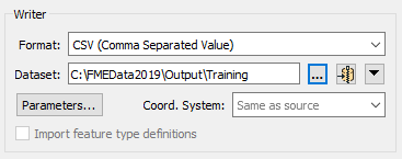 Similarly, the Writer format and dataset are defined in this dialog: