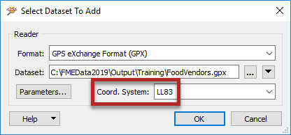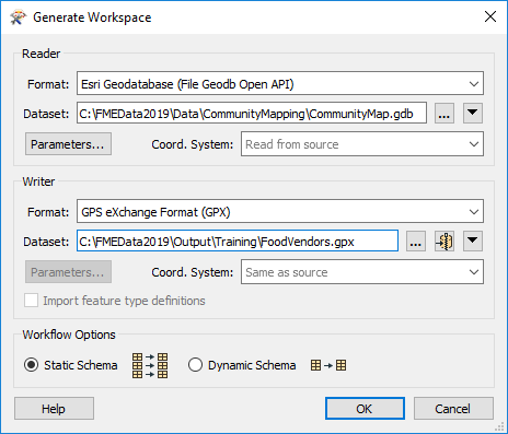 | Writer Dataset | C:\FMEData2019\Output\Training\FoodVendors.gpx |