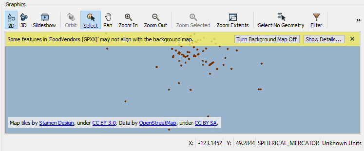 Click OK, and the dataset will be opened for you to verify that it is correct (points should appear in Vancouver, BC):