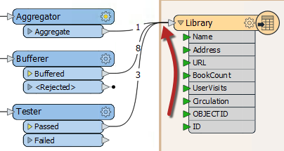 Here FME reads 8 features but, because there are multiple connections, creates multiple copies of the data.