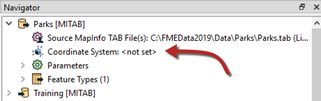 Remember, when a reader’s Coordinate System parameter is defined as <not set> FME will automatically try to determine the correct coordinate system from the dataset itself.