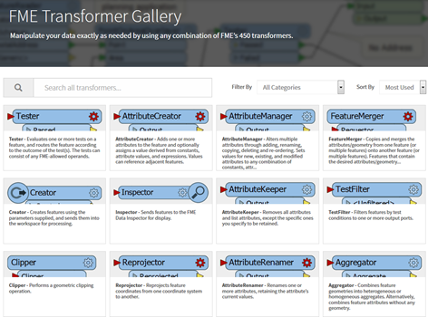 Even experienced FME users find the full list of transformers a daunting sight. In this section, you’ll learn to stop worrying and love the transformer gallery.