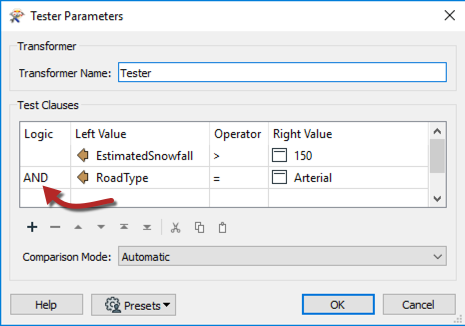 The Tester also allows the mixing of AND and OR statements using what is called a Composite Test. For example: