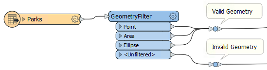 - Filtering out unwanted geometry types; for example, removing non-linear features before using an AreaBuilder transformer