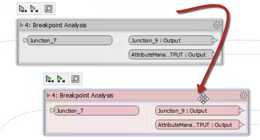 Bookmarks define a section of the workspace containing a number of objects. When editing a workspace without bookmarks, moving objects is done by selecting the object or objects, and dragging them to a new position.
