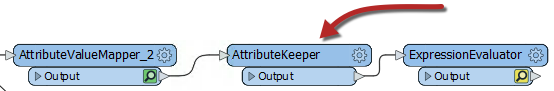 One aspect of data is the number of attributes and lists. Since there are a lot of additional attributes to remove but only a few we need to keep, we will use the AttributeKeeper transformer. Place the AttributeKeeper between the AttributeValueMapper_2 and the ExpressionEvaluator transformers: