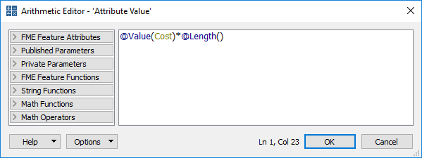 In the value field for the Cost attribute, click the drop-down arrow and select Open Arithmetic Editor. In that dialog enter the expression: