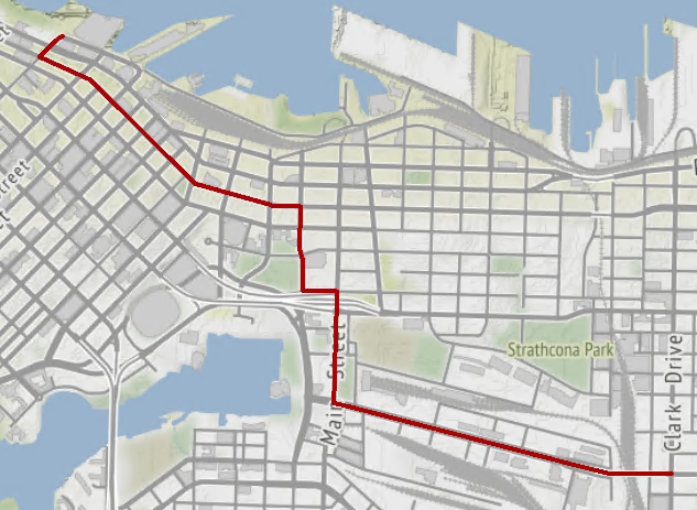 The result looks fine, but there are some things we are still uncertain about: for example, what if the route uses slower, residential roads? We can force the route to prefer arterial routes by applying a different cost to each road feature.