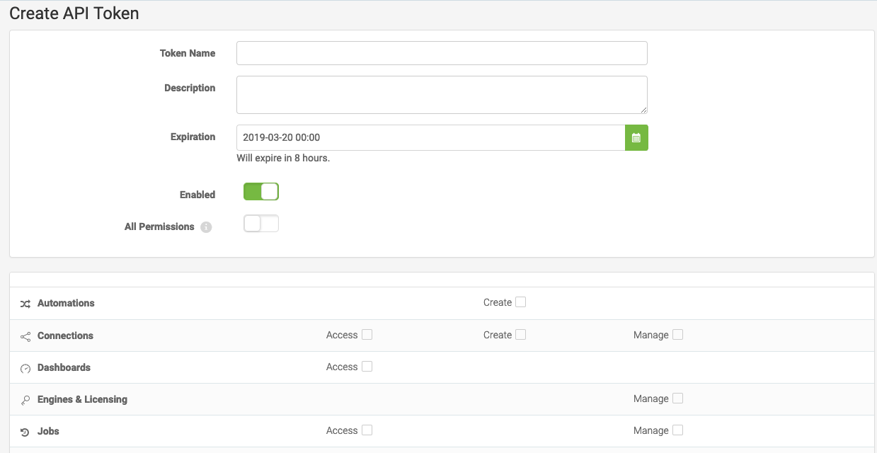 This will take you to the Create API Token page where you can create a token, add a description, and assign the permissions for the token. We will create a new token in the next exercise.