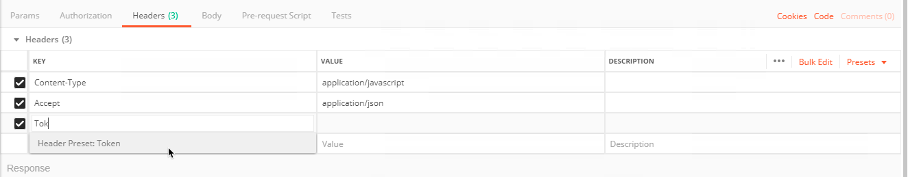 To enter in the headers required for this call. Click on the Headers tag as demonstrated below.